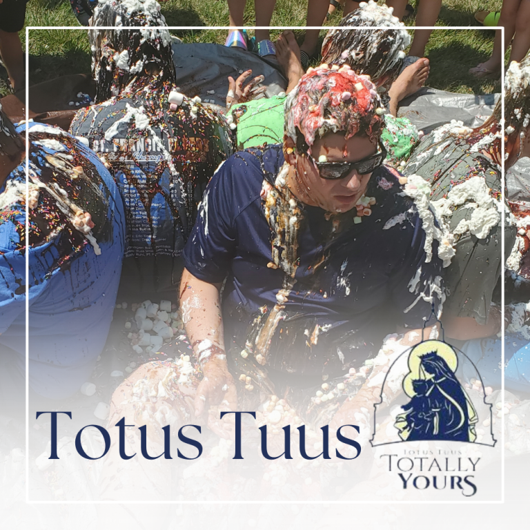 TOTUS TUUS (Totally Yours) a summer catechetical youth program, It is for youth 3 yrs old through 6th Grade. The program runs Monday-Friday 9:00a.m.-2:30pm. A team of trained, college aged youth and seminarians share their faith through catechetical instruction, daily Mass, songs, games, and recess. Lunch is provided.